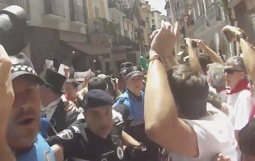 Manifestantes de la izquierda abertzale agredieron ayer al alcalde y los concejales del ayuntamiento de Pamplona. Sucedió durante la procesión de San Fermín, que se vio empañada por los zarandeos, insultos, empujones e incluso escupitajos de los violentos.