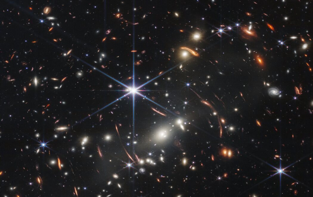 Webb logró esta toma apuntando su generador de imágenes principal hacia SMACS 0723, un conglomerado de cúmulos de galaxias masivos en primer plano que magnifican y distorsionan la luz de los objetos detrás de ellos, lo que permite una visión de campo profundo tanto de las poblaciones de galaxias extremadamente distantes como de las intrínsecamente débiles.