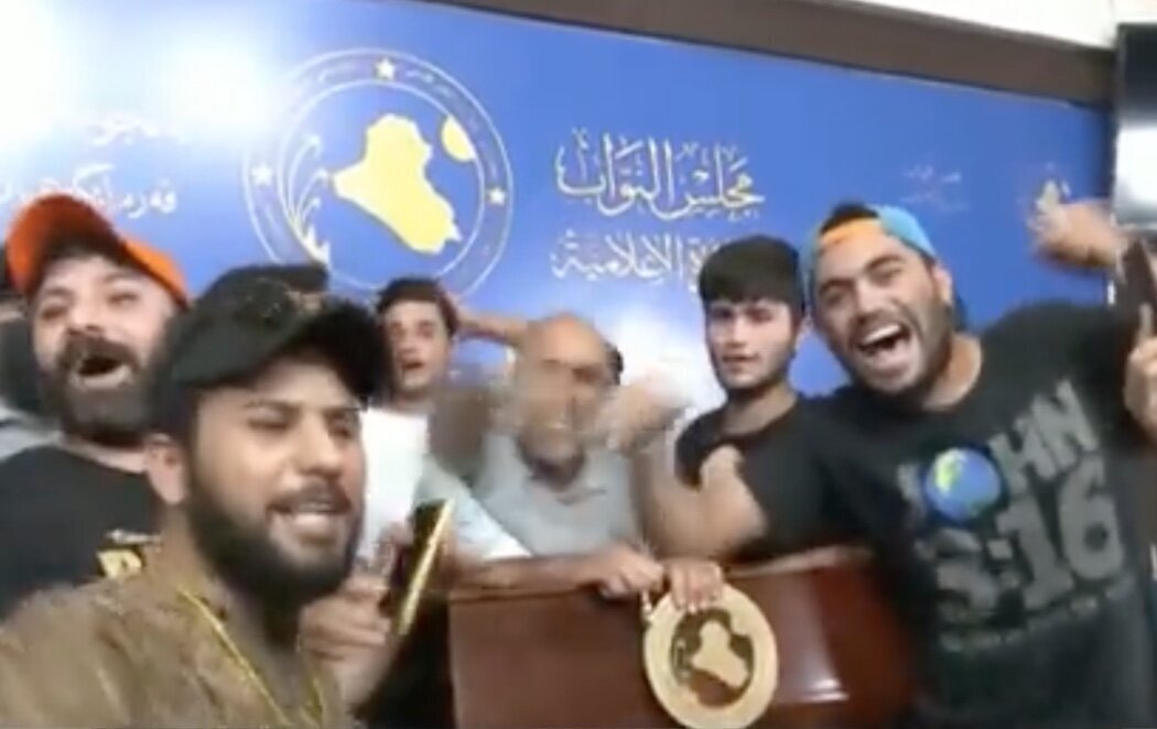 La televisión iraquí Rudaw retransmitió las imágenes desde el interior de la Cámara baja, donde se pudo presenciar a decenas de partidarios de Al Sadr sentados en los asientos del hemiciclo haciéndose fotos encima de las mesas y haciendo el signo de la victoria ante la pasividad de las fuerzas desplegadas dentro del edificio.