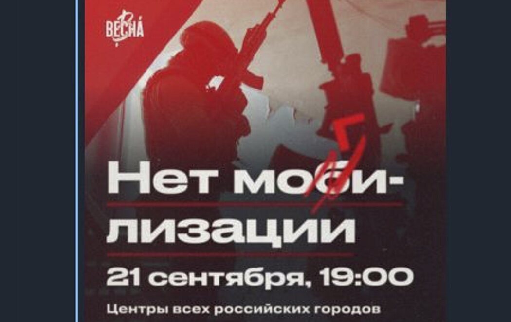 The #Russian anti-war movement "Vesna" calls for protests against the mobilization. Rallies are announced for 7 p.m. in the center of all Russian cities. pic.twitter.com/2sPgLsrL8V