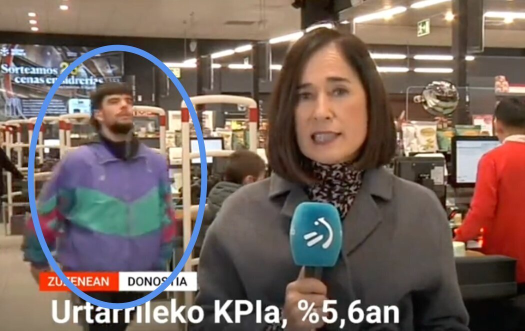 Las cámaras de televisión de la EITB, la televisión pública vasca, han captado en pleno directo el presumo robo cometido por un joven en un supermercado de San Sebastian, donde la periodista Pilar Insausti de la nueva escalada del Índice de Precios de Consumo (IPC).
