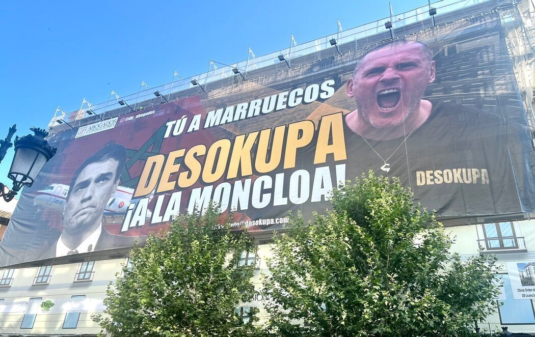 La empresa Desokupa, que expulsa a los inquilinos de sus viviendas, ha colgado una lona contra el Gobierno en la que también señala a sus aliados en el Congreso de los Diputados. "Tú a Marruecos, Desokupa a La Moncloa", se puede leer en el cartel, donde aparece el presidente del Gobierno, Pedro Sánchez, y el fundador de la entidad, Daniel Esteve.