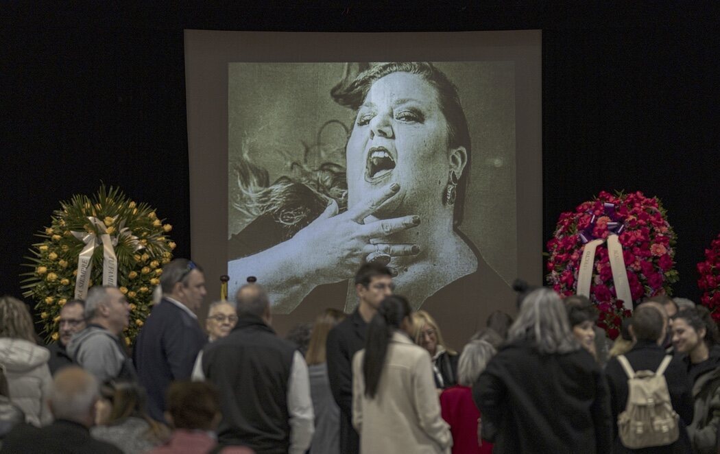 El ataúd se mantiene abierto, junto a un atril con una fotografía de la intérprete y el mensaje "Solo quiero que, de vez en cuanto, os acordéis de mi", rodeado de varias coronas de flores de familiares y amigos. Además, se ha colgado una bandera LGTBI en un extremo del ataúd, situado ante una bandera de Cataluña y otra de España, ubicadas en el fondo.