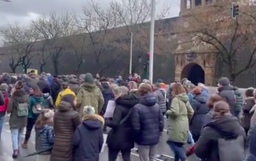 Una multitudinaria manifestación ha recorrido las calles de Pamplona para reclamar un "alto el fuego" en Gaza y reclamar que el Gobierno de España rompa "todo tipo de relaciones con Israel".