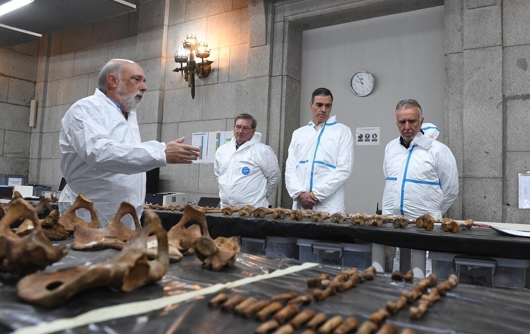 El presidente del Gobierno, Pedro Sánchez, ha visitado el Valle de Cuelgamuros, antiguo Valle de los Caídos. El jefe del Ejecutivo lo ha hecho acompañado de los dos forenses que dirigen el equipo que busca los restos de las víctimas del franquismo enterradas en las criptas, Francisco Echeverria y Francisco Ferrandis; así como del ministro de Política Territorial y Memoria Democrática, Ángel Víctor Torres, y el secretario de Estado de Memoria Democrática, Fernando Martínez.