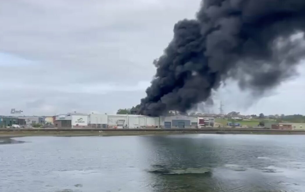 Un fuerte incendio declarado durante la mañana de este miércoles, 21 de mayo, en una fábrica dedicada a la fundición de piezas de bronce en el polígono industrial de Riamar (Camargo, Cantabria) ha desatado una enorme columna de humo negro visible desde toda la bahía. Las llamas ya han sido controladas, según ha explicado el servicio regional de emergencias.