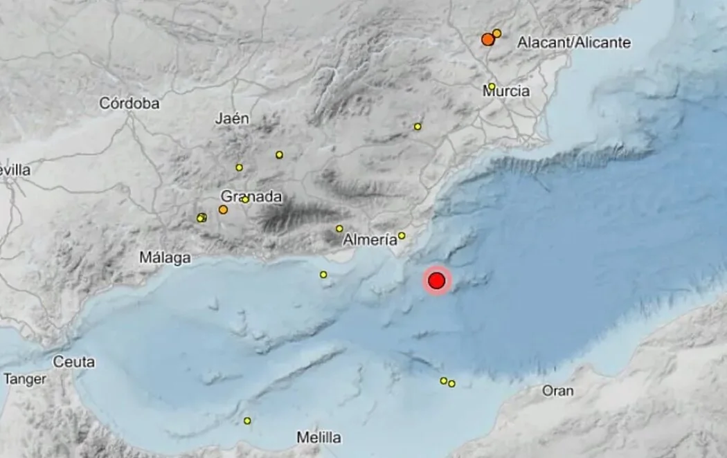 Un terremoto ante las costas de Almería, con magnitud de 5,5 y a tres kilómetros de profundidad, se ha dejado sentir este lunes, pasadas las 07:00 horas de la mañana, en varios municipios de Almería, Granada, Málaga, Murcia y Albacete. No se han registrado heridos, aunque se han producido algunos desprendimientos en los techos del Aeropuerto de Almería y un concesionario de coches.