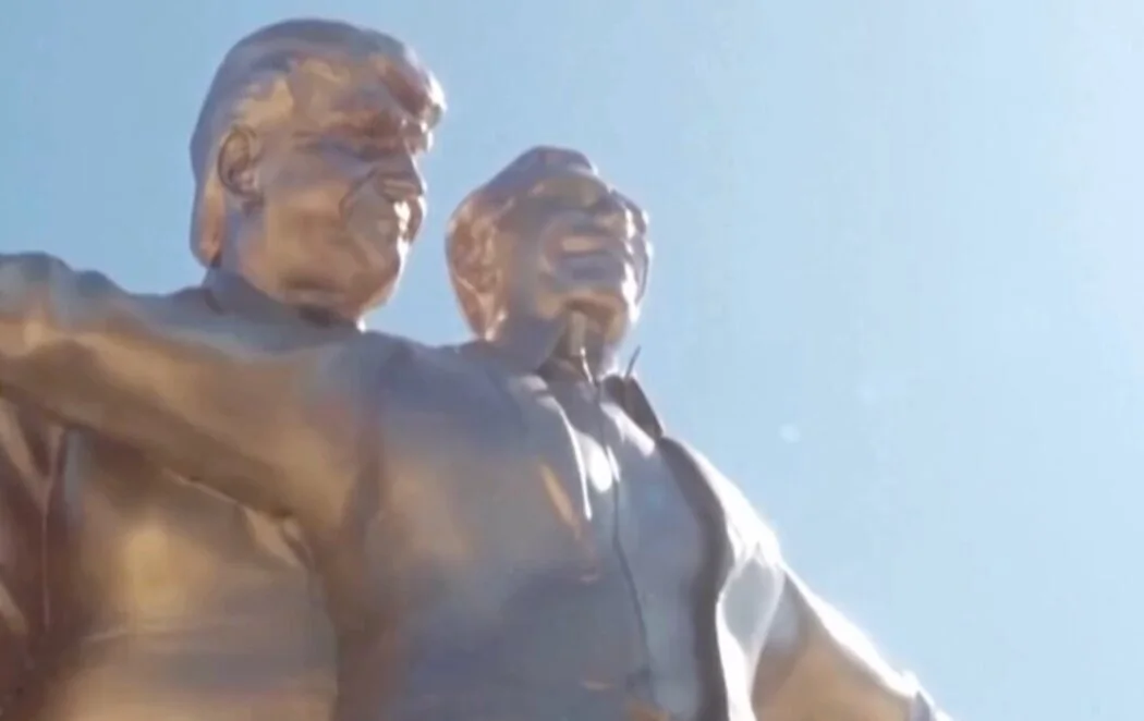 La estatua muestra a Trump mirando a Epstein con los brazos extendidos. Esta es la más reciente de una serie de estatuas satíricas que han aparecido en Washington desde octubre de 2024, justo antes de que se celebraran las elecciones presidenciales.