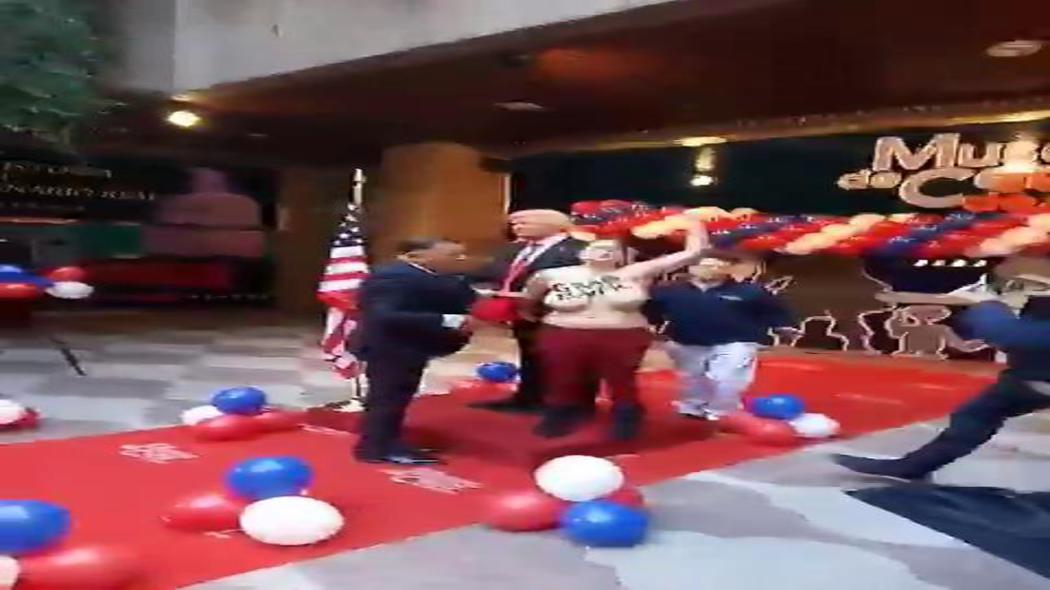 Activista de Femen protesta contra Donald Trump en el Museo de Cera de Madrid