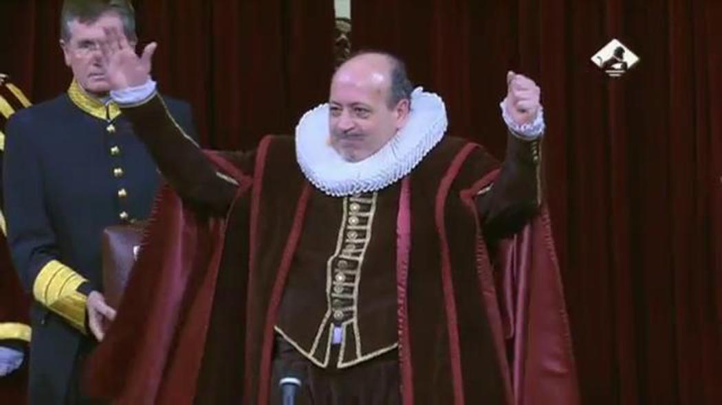 Cervantes preside por un día el Congreso de los Diputados. En realidad, es el actor Manuel Tallafé el que le da vida, con motivo del 400º aniversario de la muerte del escritor más famoso de la literatura española. Recibido con una gran ovación, Cervantes da un afilado discurso en el que combina su historia con las nuevas tecnologías y aprovecha para lanzar algún dardo a los políticos de la actualidad.