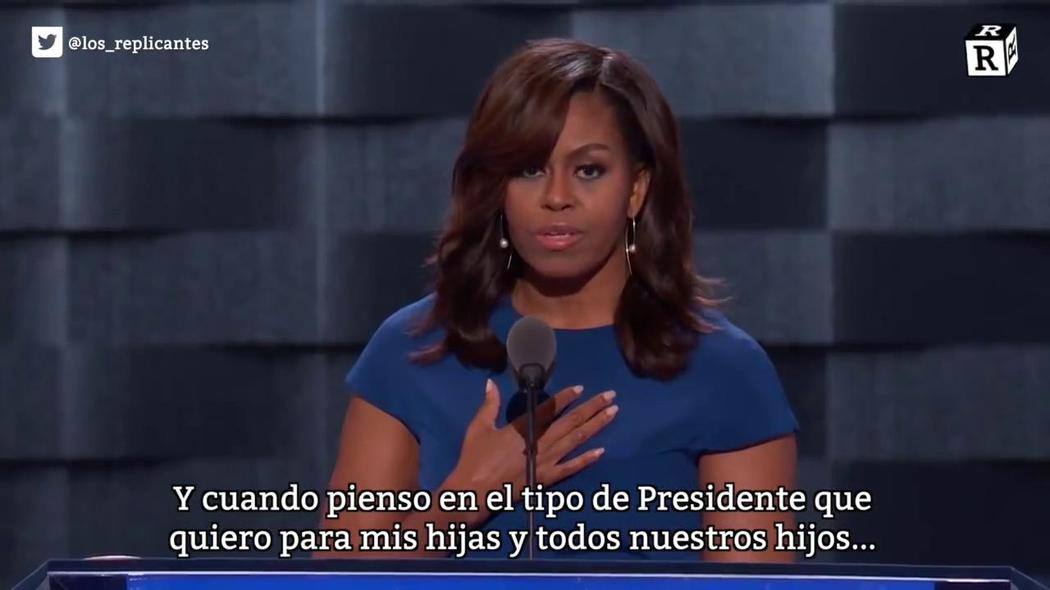 Michelle Obama dio un aclamado discurso en la convención del Partido Demócrata celebrada en Philadelphia que levantó los aplausos tanto de los asistentes presentes en el estadio como de los espectadores que seguían la retransmisión. Mientras defendía la candidatura de Hillary Clinton, la Primera Dama hizo frente a temas como la esclavitud y criticó a Donald Trump, de quien dijo que el Presidente no podía reducir los asuntos importantes a "blanco o negro" ni condensarlos "en 140 caracteres" cuando tiene a su alcance los códigos nucleares o el Ejército. Tal fue el éxito de sus palabras, que muchos empezaron a defender que Michelle se presente a la Presidencia en 2020.