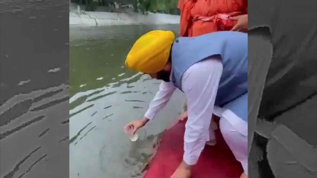 El vídeo del momento fue difundido en los canales del gobierno de Punjab: "Bhagwant Mann, mientras bebía agua bendita en Sultanpur Lodhi, la tierra tocada por los pies de Guru Nanak Sahib", decía la publicación en el perfil del partido.