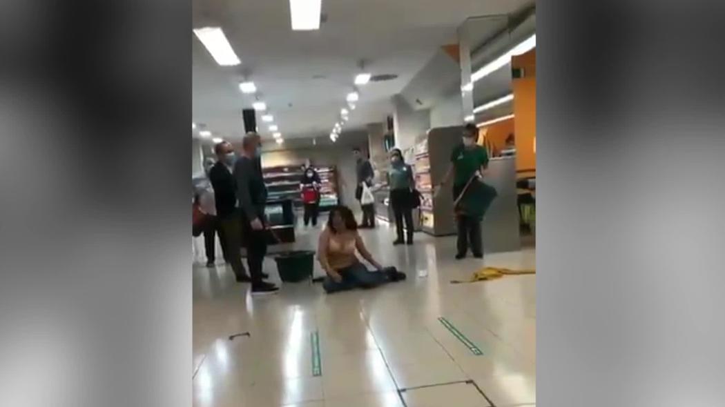 Ante esta violencia el vigilante de seguridad trató de reducirla pero tras zafarse consiguió coger unas cestas de hacer la compra para lanzarlas contra el encargado. Finalmente consiguieon reducirla en el suelo mientras la mujer no dejaba de gritar pidiendo socorro. Cuando la liberaron, lejos de tranquilizarse optó por desnudarse quitándose el jersey y desabrochándose el pantalón. Al sentirse ignorada, optó por tumbarse "haciéndose la muerta" hasta que finalmente la Policía Nacional llegó y procedió a su detención.