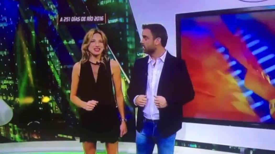 La presentadora argentina Alina Moine, de Fox Sports, sorprendió a la audiencia al levantarse la falda en directo por accidente y mostrar su ropa interior.